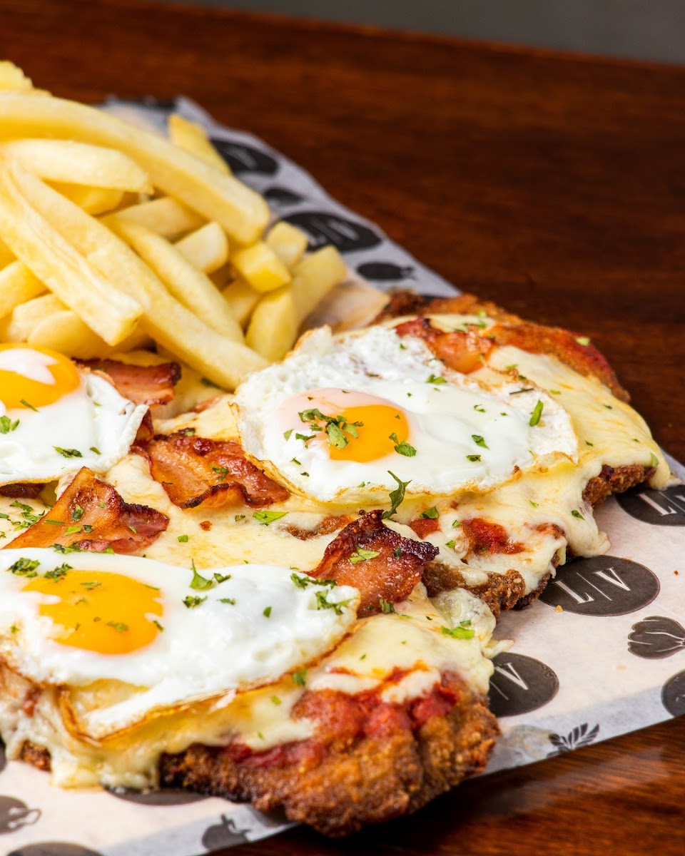 Don’t miss out on their main dishes, which showcase culinary finesse. The Pollo empanado is a must-try: tender chicken breast enveloped in a crispy golden crust, generously topped with creamy mushrooms and melted mozzarella, served alongside delectable papas noisette à la crema and a vibrant sauté of panceta and pimientos. For meat enthusiasts, the Vacío de Cerdo offers a juicy, fulfilling dining experience, complemented beautifully with house-made sauces like Mostaza or a rich Bolognesa.